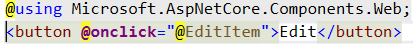 <MessageItem MessageRecord="item" OnEdit="@MessageEdit" OnDelete="@MessageDelete"></MessageItem>